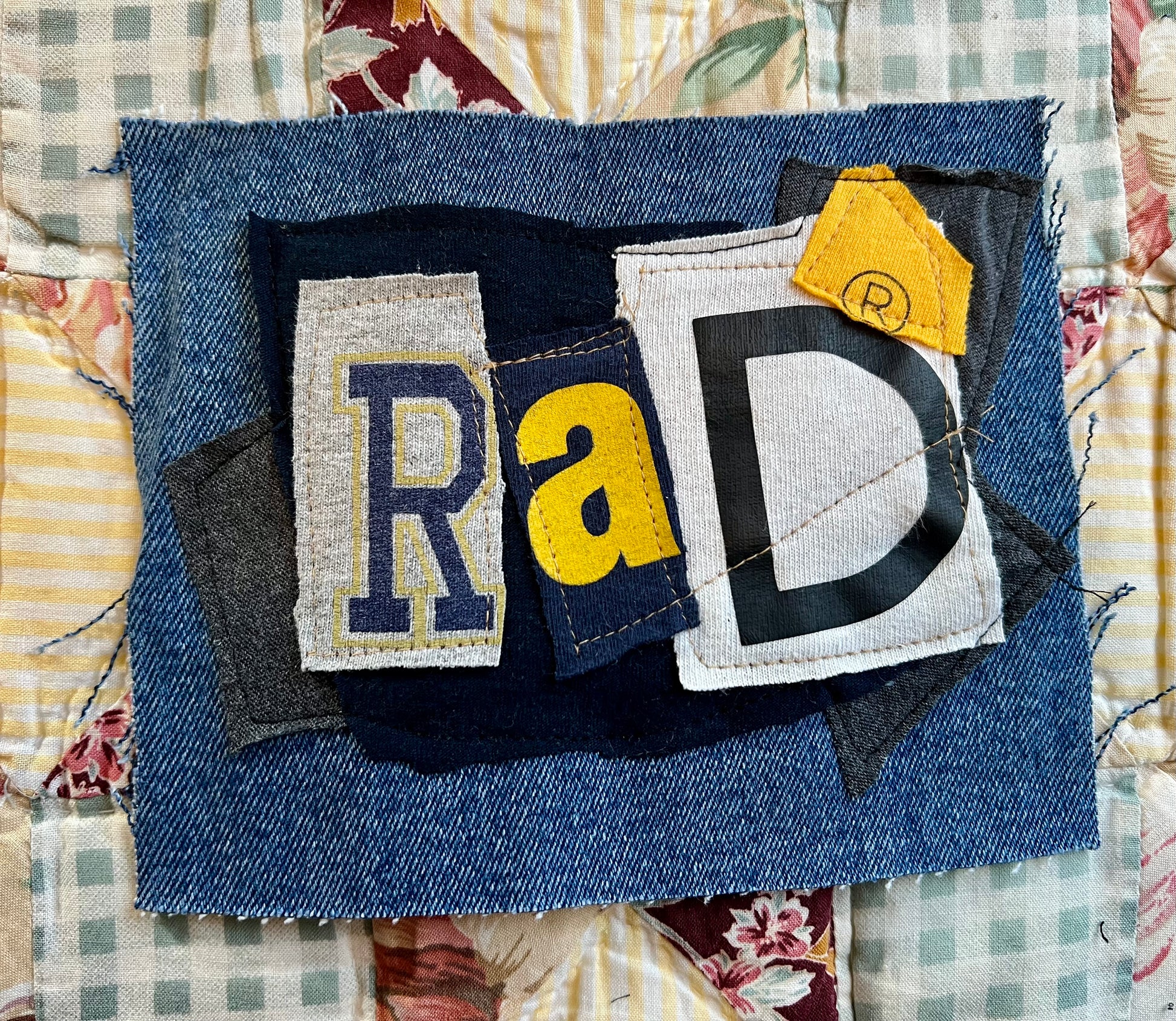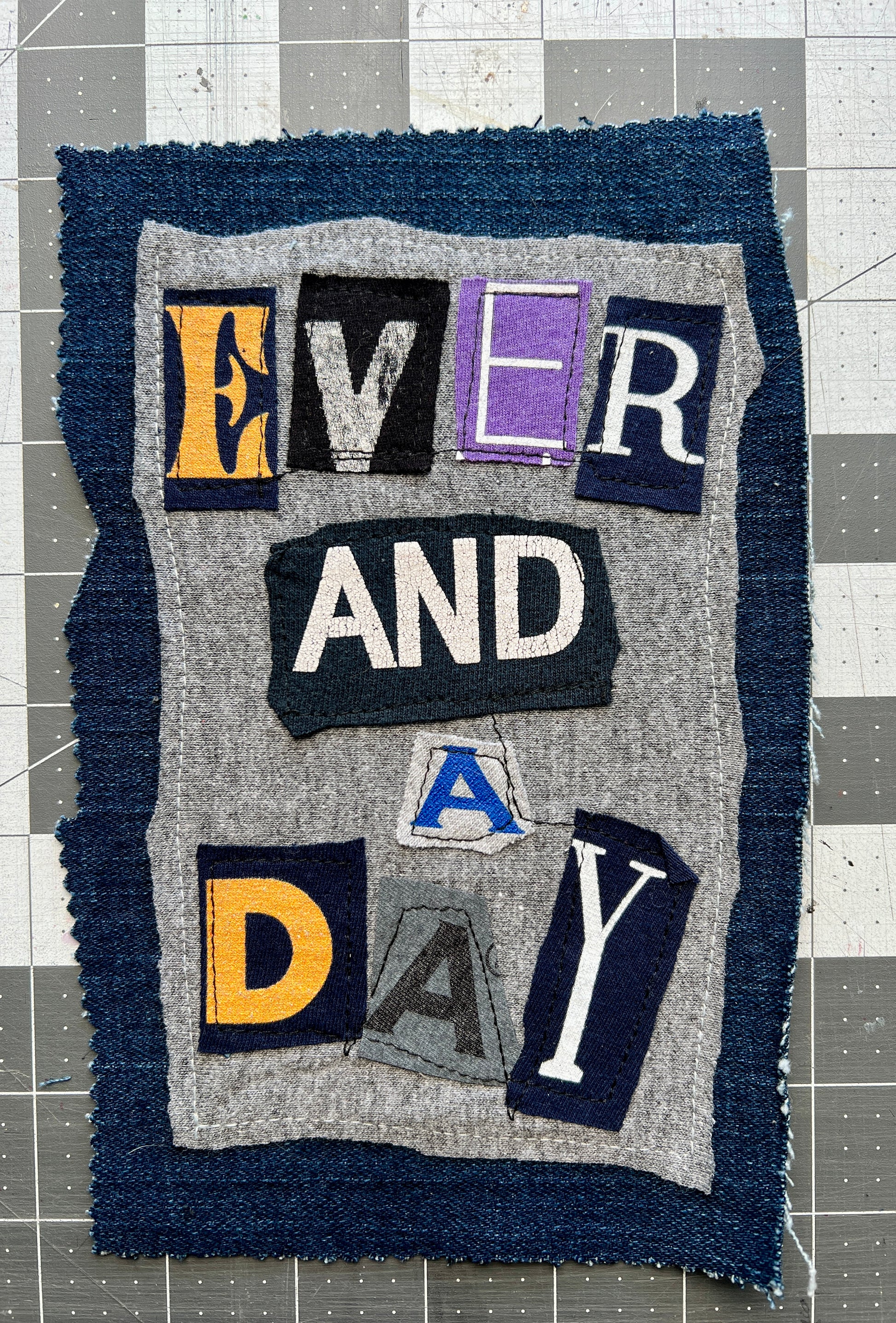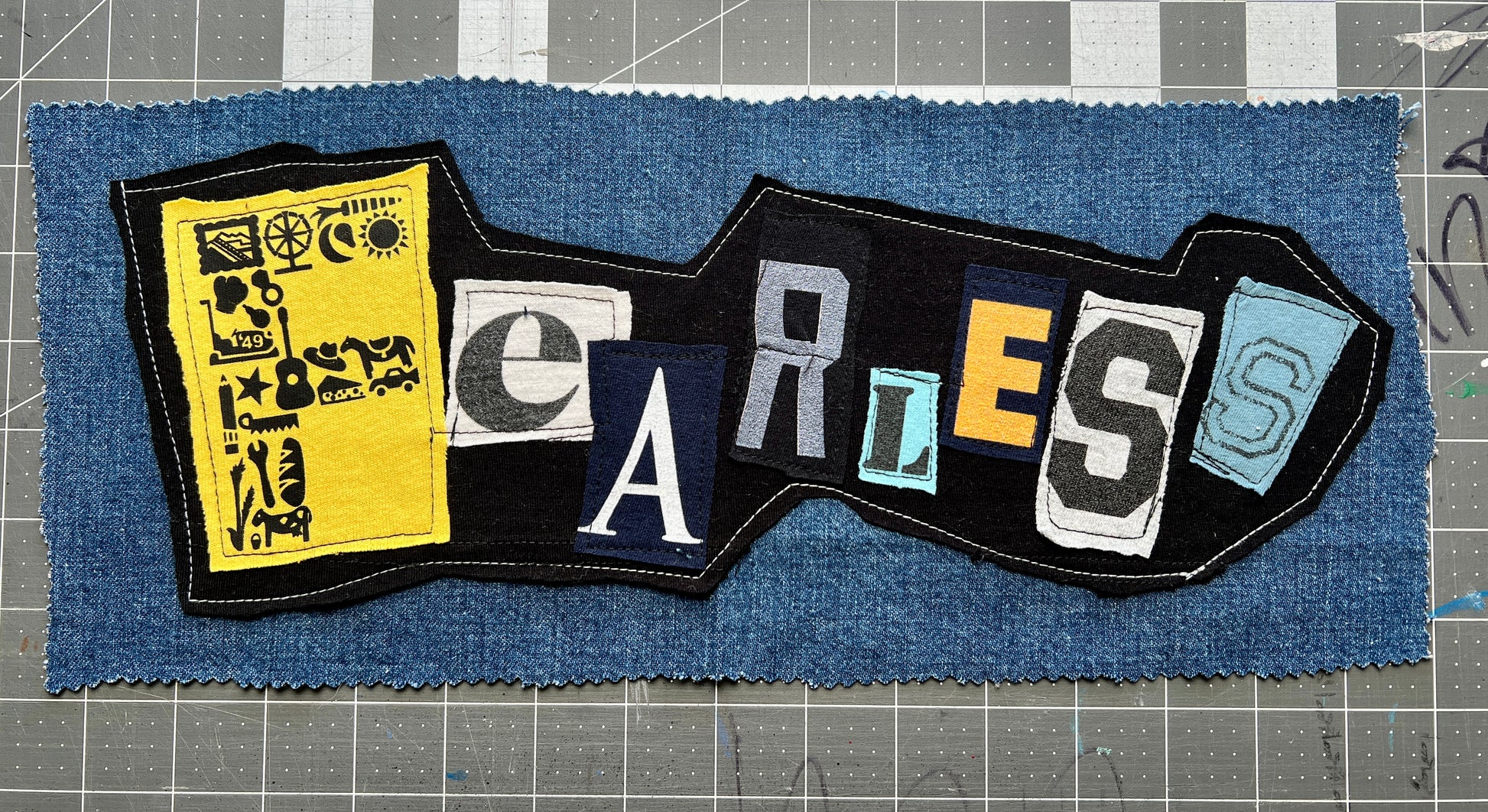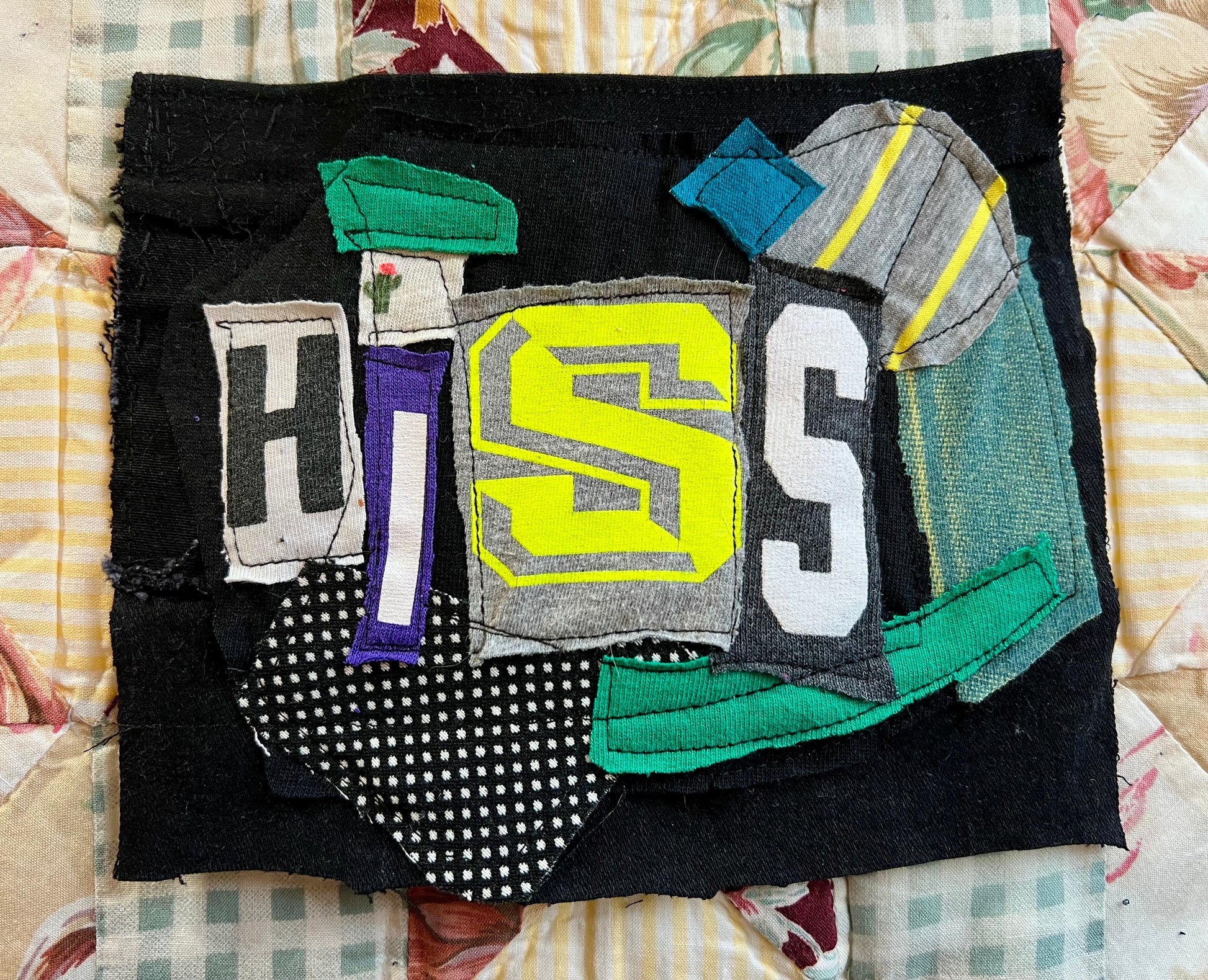 This is a unique DIY punk patch, upcycled from denim scraps and tshirt, with a custom design on the front of letters from various shirts in a random ransom note design. Durable patches, easy to sew onto jackets, pants, bags, etc. Panic in Polkadots, Taylor Swift, Blaqk Audio, Dreamcar, and AFI are the inspiration, with many more to come!