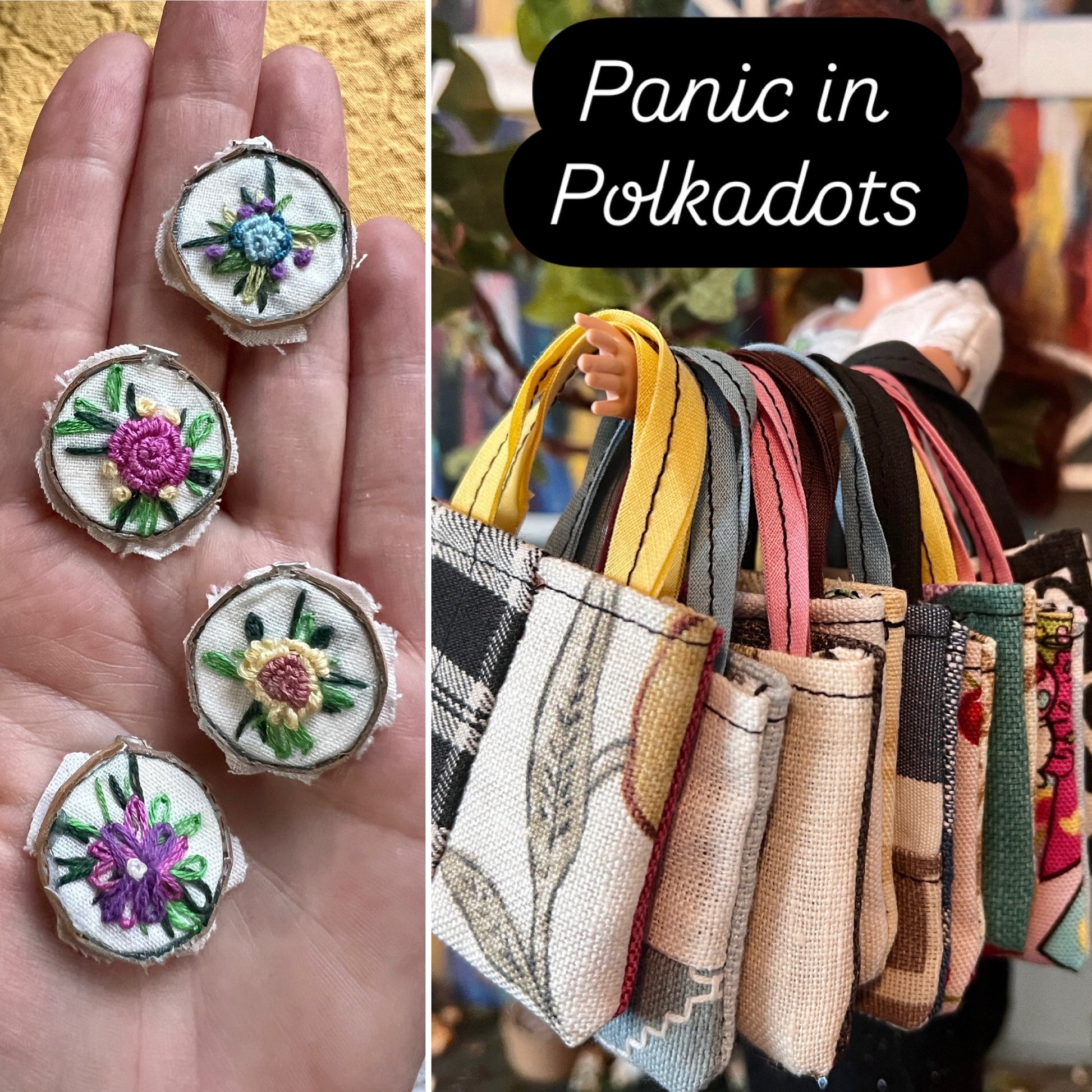 This is a listing for a unique scrappy Barbie tote bag! These are perfect for Barbie, 1:6 scale to compliment any outfit! Measures about 2 1/2 inches square in the body, and the double straps are about 3 inches long. Created out of the tiniest scraps and bias tapes.