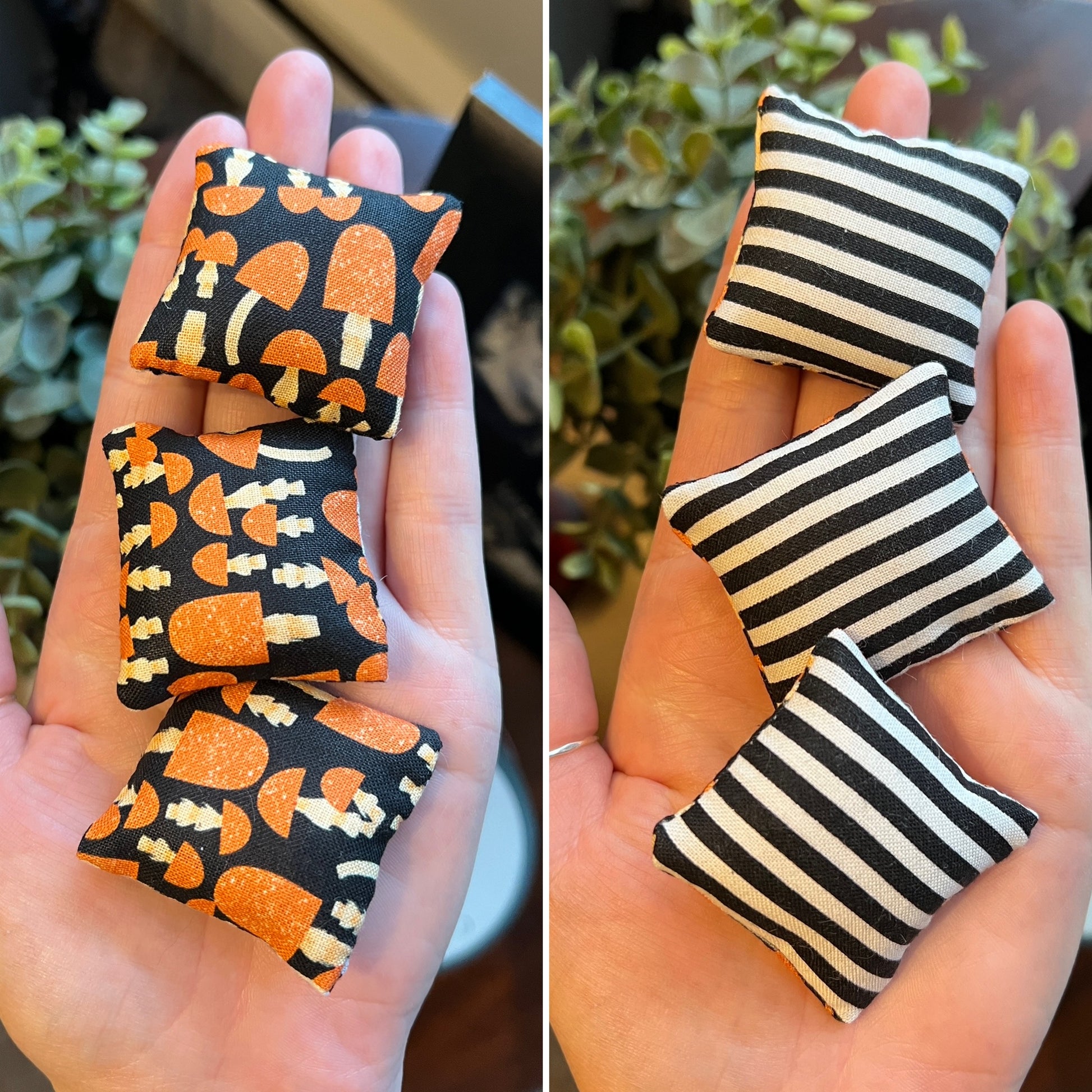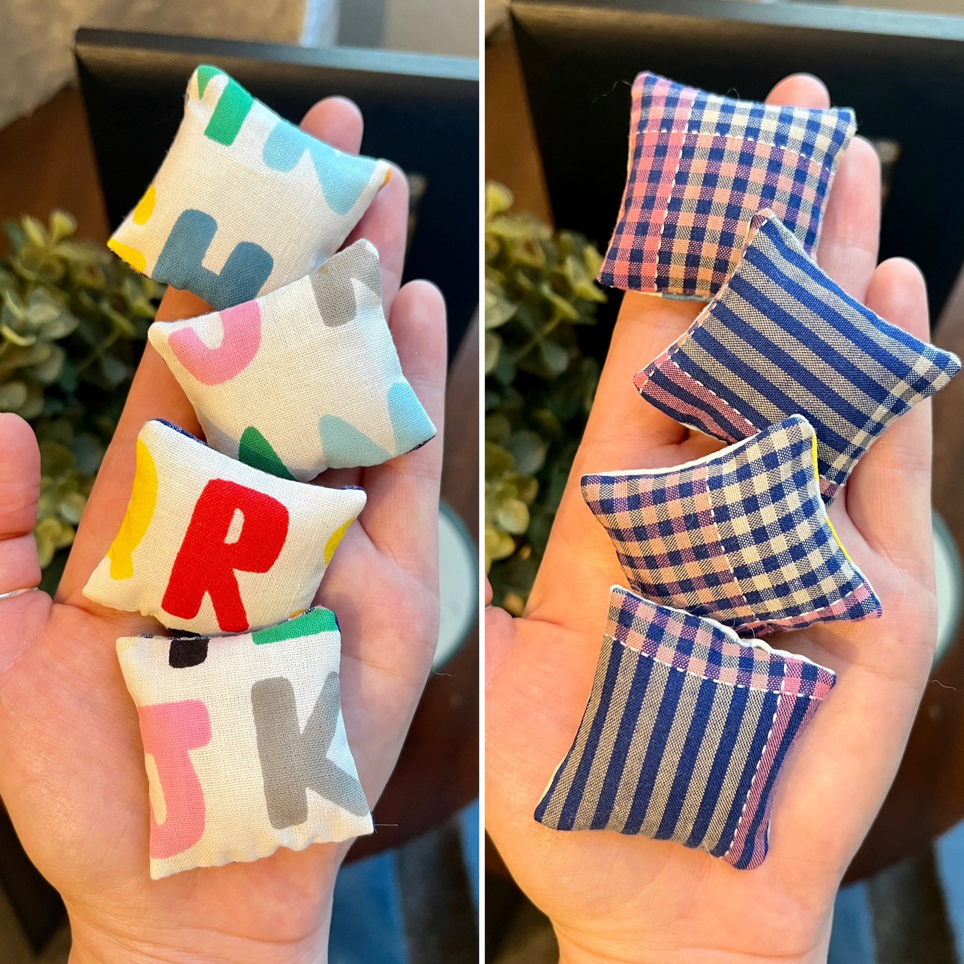 Choose from various tiny print designs. Mix and match for a cool array on your doll couch or bed. Thank you for shopping small!