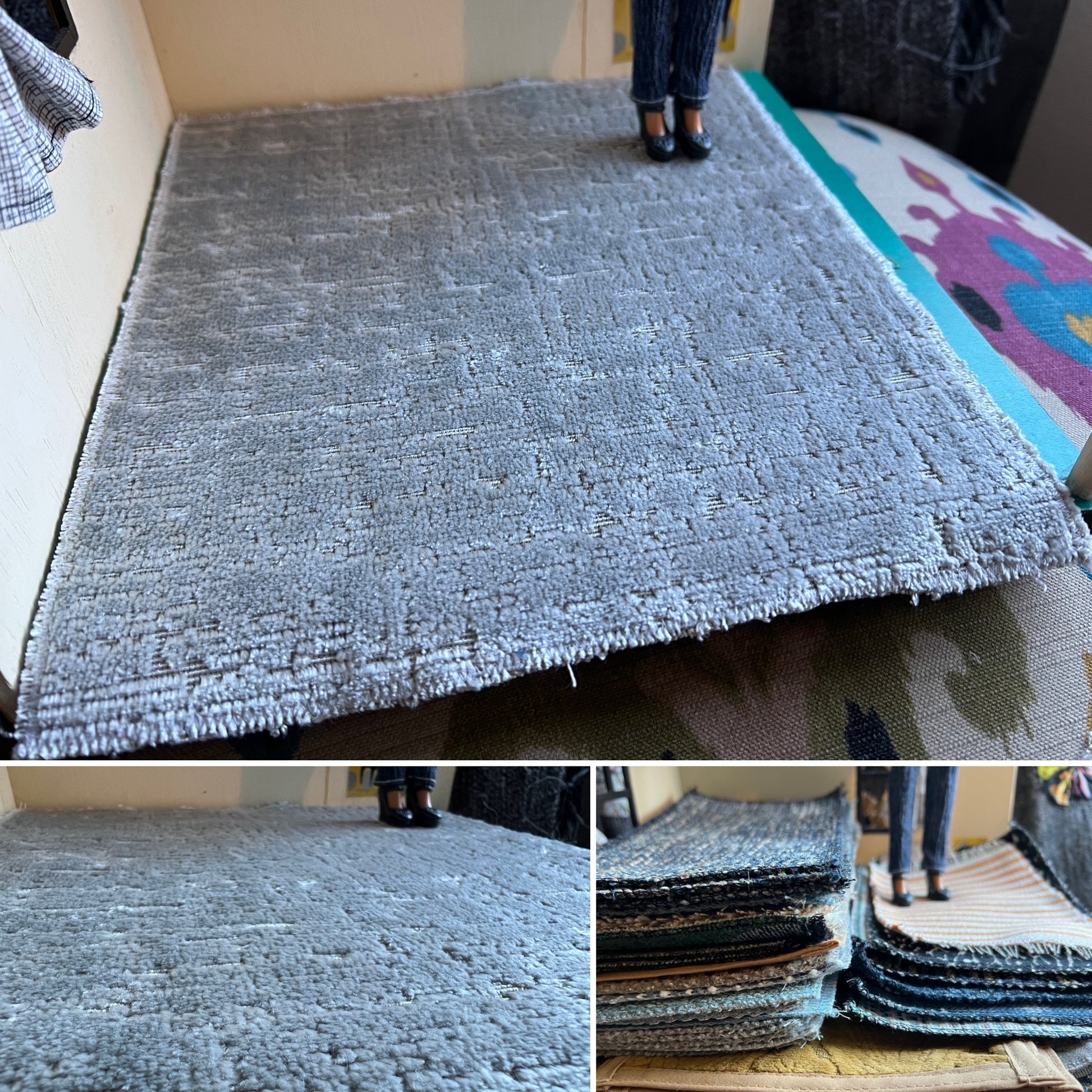 This is a one-of-a-kind miniature rug created from discontinued fabric samples, in designer textiles. Perfect for your 1:12 scale dollhouse (one inch equals approximately one foot) or 1:6 scale (12 inch fashion doll size).