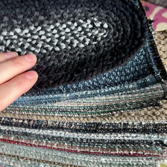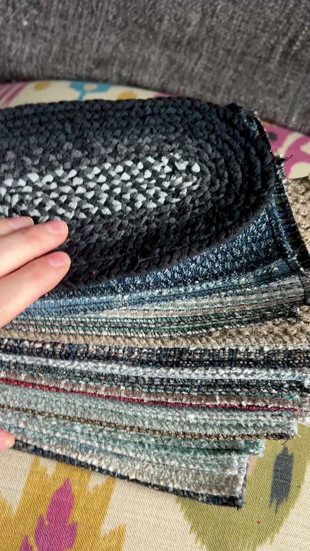 Created out of samples from my work, which were destined for the trash until I saved them. Edges are overlock stitched, and machine stitched for added security.