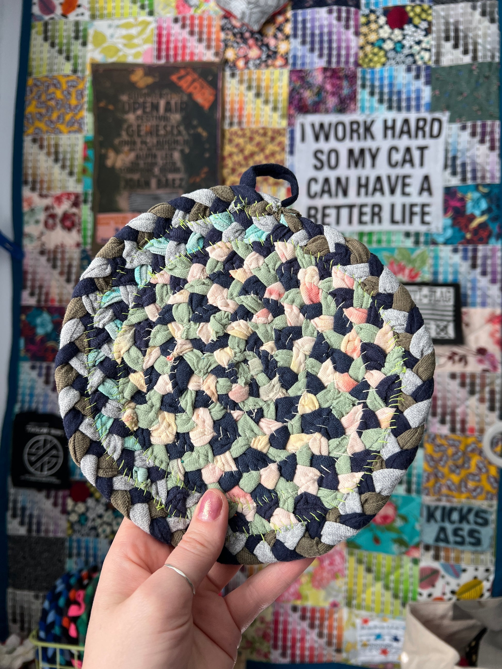 Braided Trivet Potholder Single - Handbraided & Handsewn - Set of One