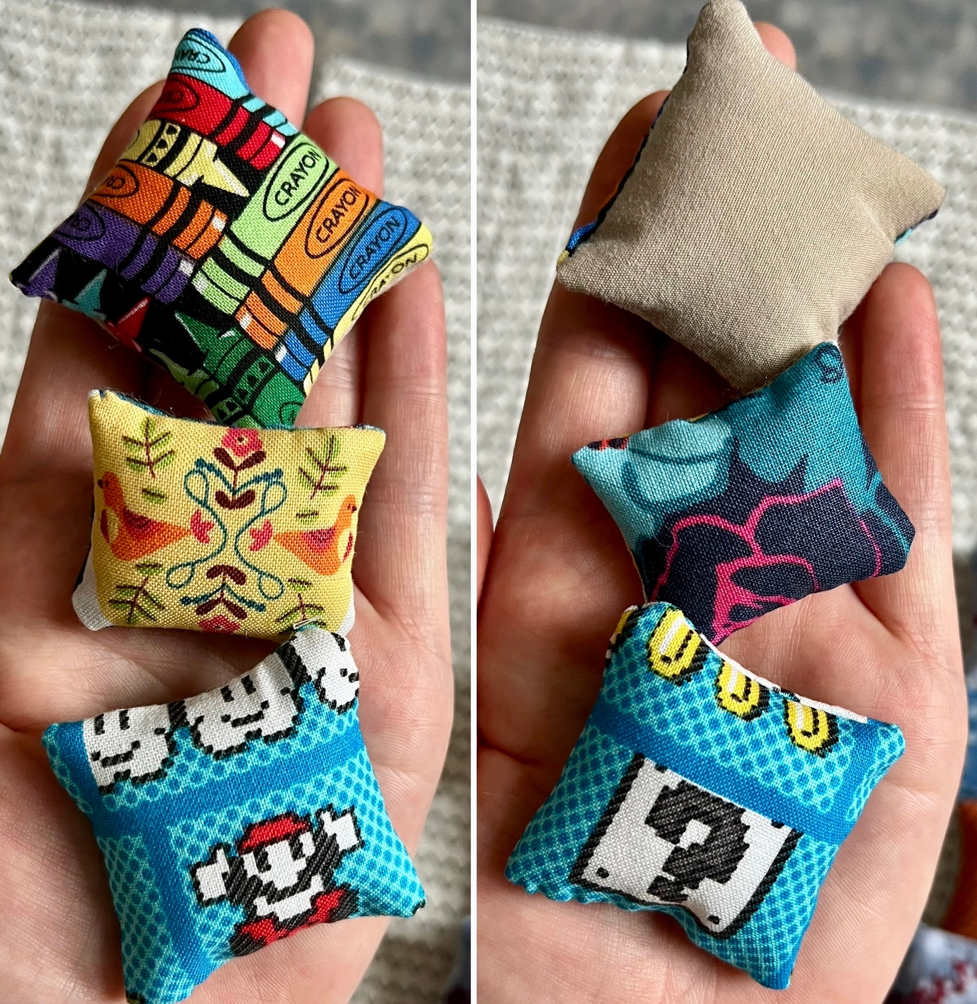 Choose from various tiny print designs. Mix and match for a cool array on your doll couch or bed. Thank you for shopping small!