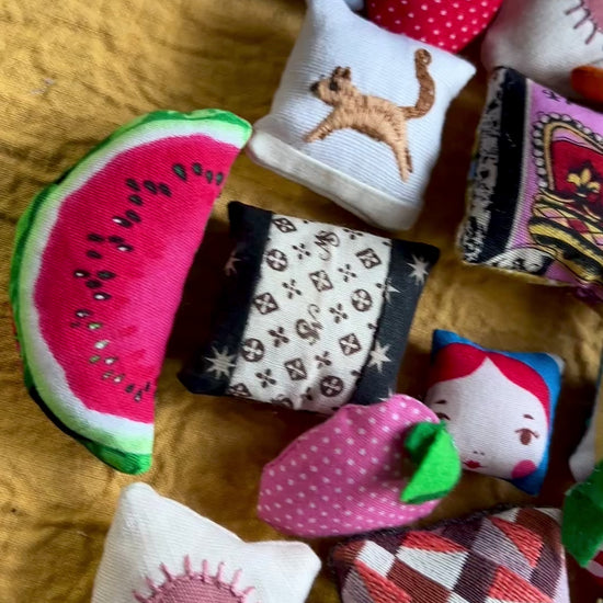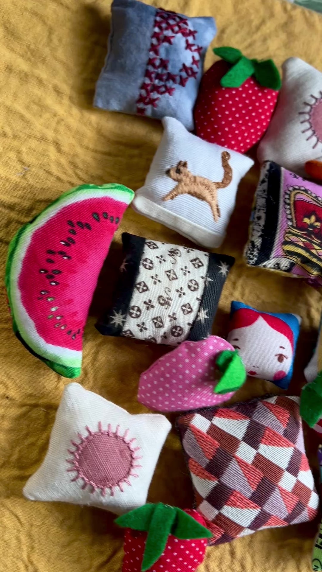 This is a listing for a single one-of-a-kind, miniature pillow, some with embroidery detail. These are perfect for 1:12 scale dollhouses, or small pillows for 1:6 scale dollhouses or miniature displays.
