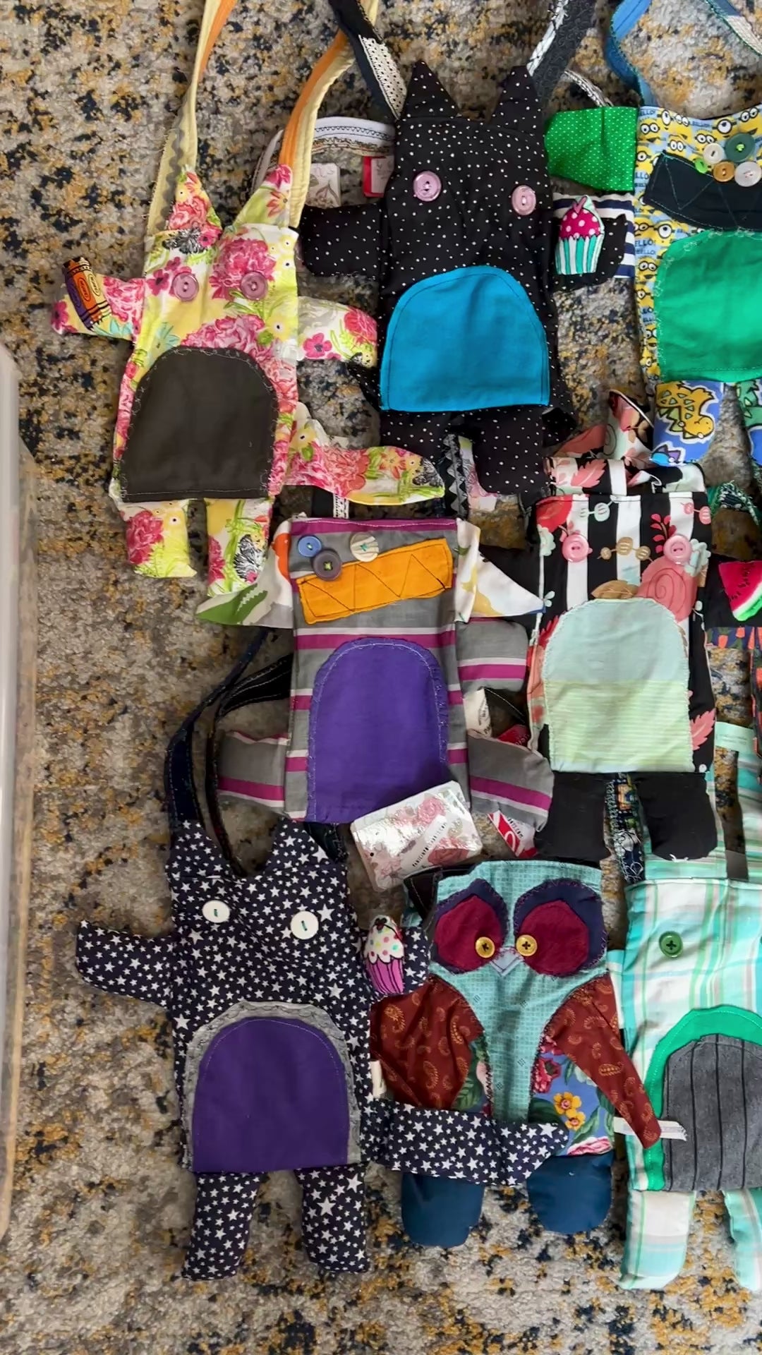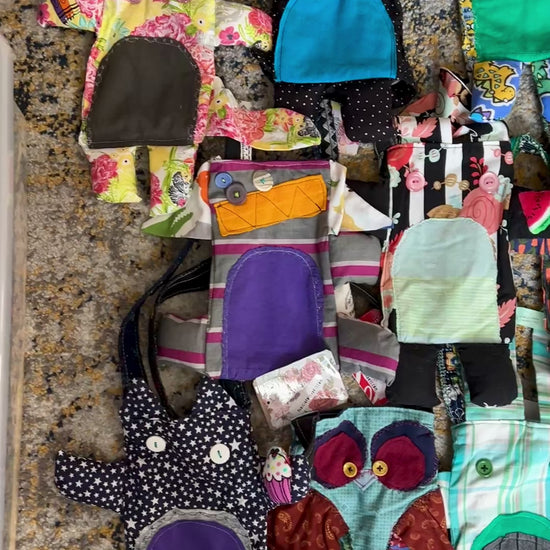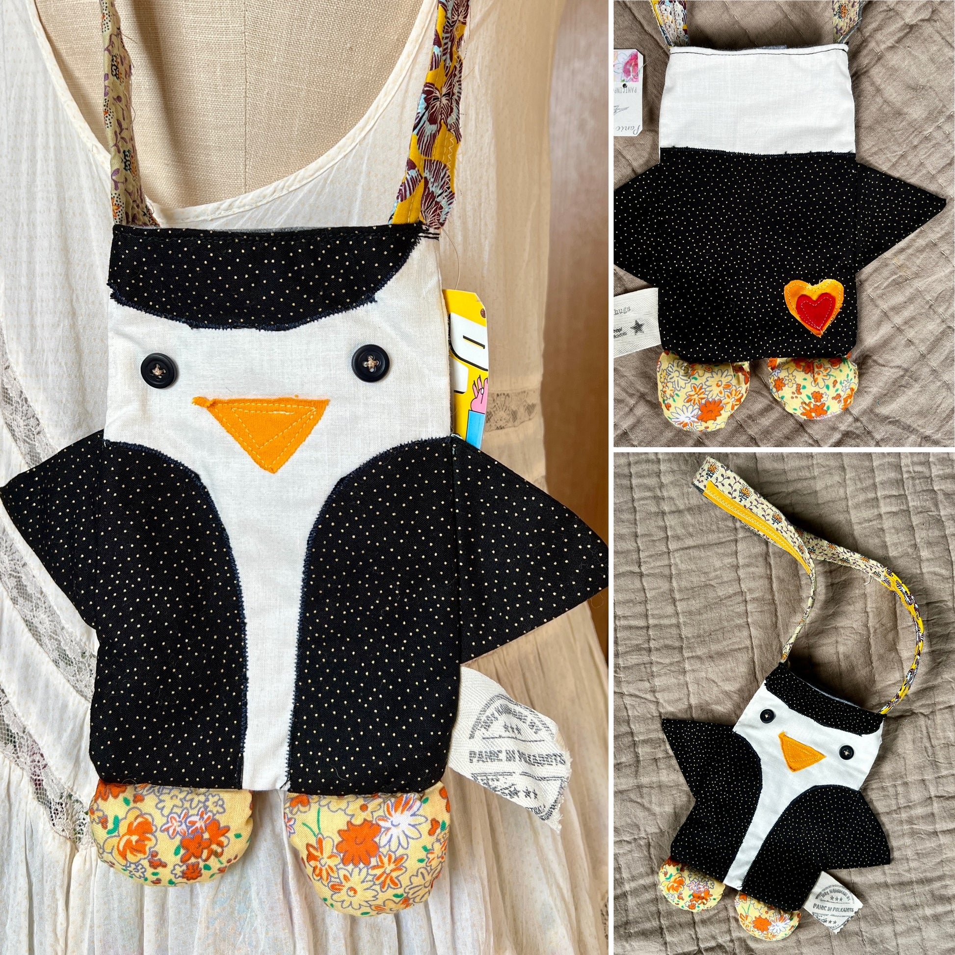 This is a one-of-a-kind tote bag in the style of a monster or animal friend, guaranteed to hold your stuff in the cutest way possible! It has been hand-crafted from a mix of new and vintage materials, creating a small tote bag or satchel that is unlike any other.