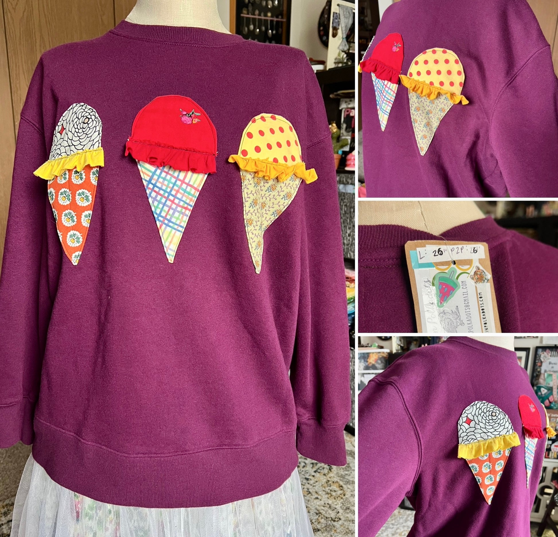 Cranberry Ice Cream Cones Crew: length 26 inches, pit to pit 26 inches.