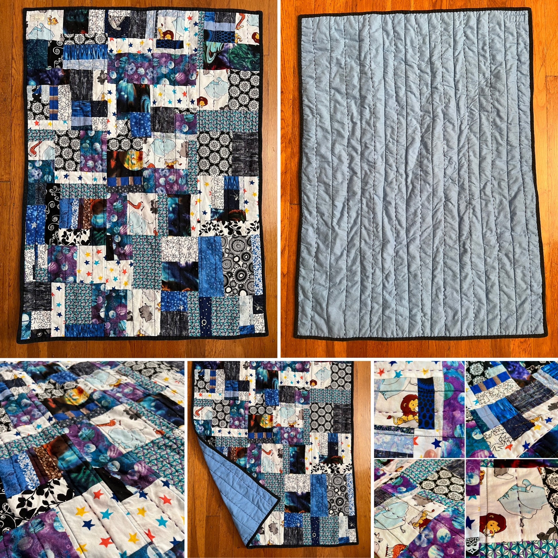 Perfect for a baby shower gift, crib quilt sized. Also can be loved by a furry pet on a bed, couch, or your favorite chair. Easy to wash, and helps keep pet hair off of your other surfaces. Comfort levels have been thoroughly tested by my own animal kids, and have been pre-washed for extra fluffiness and cleanliness. Each quilt measures 30 x 40 inches.